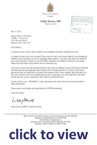 In the most recent case, the handwritten letter was from an oldtimer from the Downtown Eastside who had used an old campaign office address from Commercial Drive. I know if I had never gotten the letter he would have felt upset and wondered why I never replied. But fortunately for me, your members were very helpful and pro-active, and now I can write him back (and make sure he has our correct community office address on Main Street!).